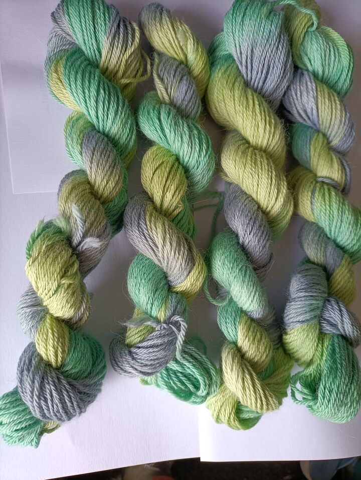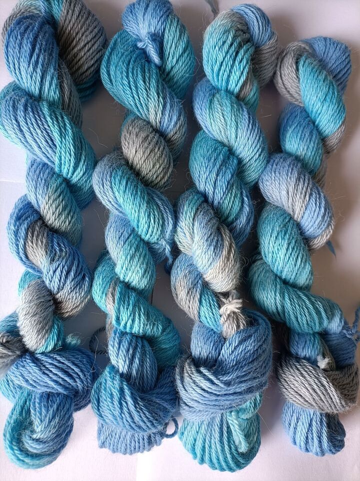 On Sunday I dyed two of the popular colourways and now they are all dry and skeined up. These are 8 Ply Multi 100% Alpaca and available for purchase. 003 Blue Combo and 004 Green Combo