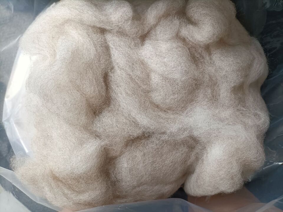 The popular light rose grey carded fibre grown by Voss is now back in stock.
