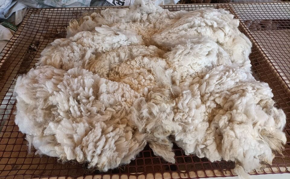 1st Fleece from Heidi, a lovely white girl. Fleece weight 1.03kg and 16.2 micron. Staple length 110mm. As with all cria fleeces this has not been skirted so there will be some VM (vegetable matter) in the fleece.