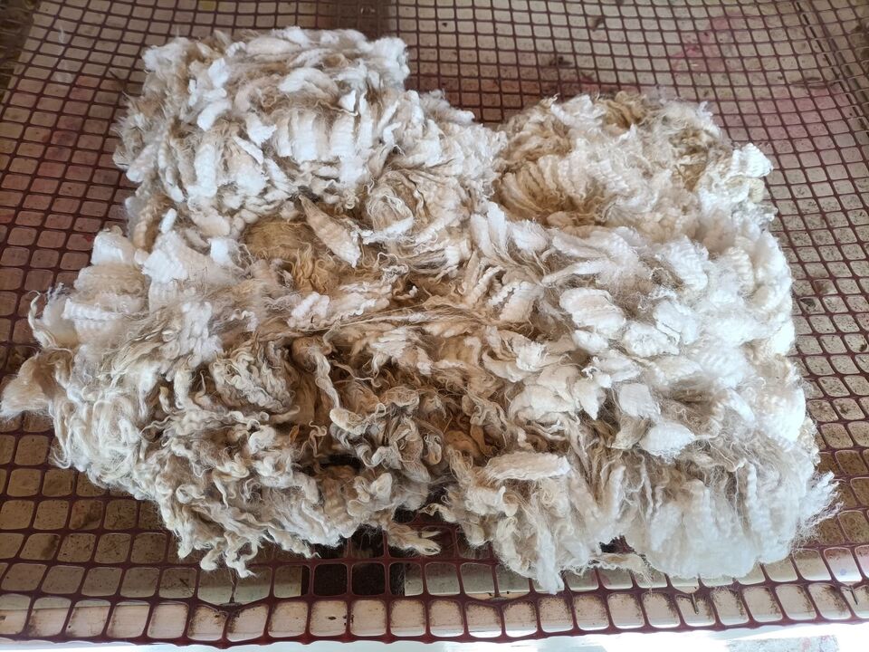 1st Fleece from Priscilla, a lovely white girl. Fleece weight 423g and 14.9 micron. Staple length 70mm. As with all cria fleeces this has not been skirted so there will be some VM (vegetable matter) in the fleece.
