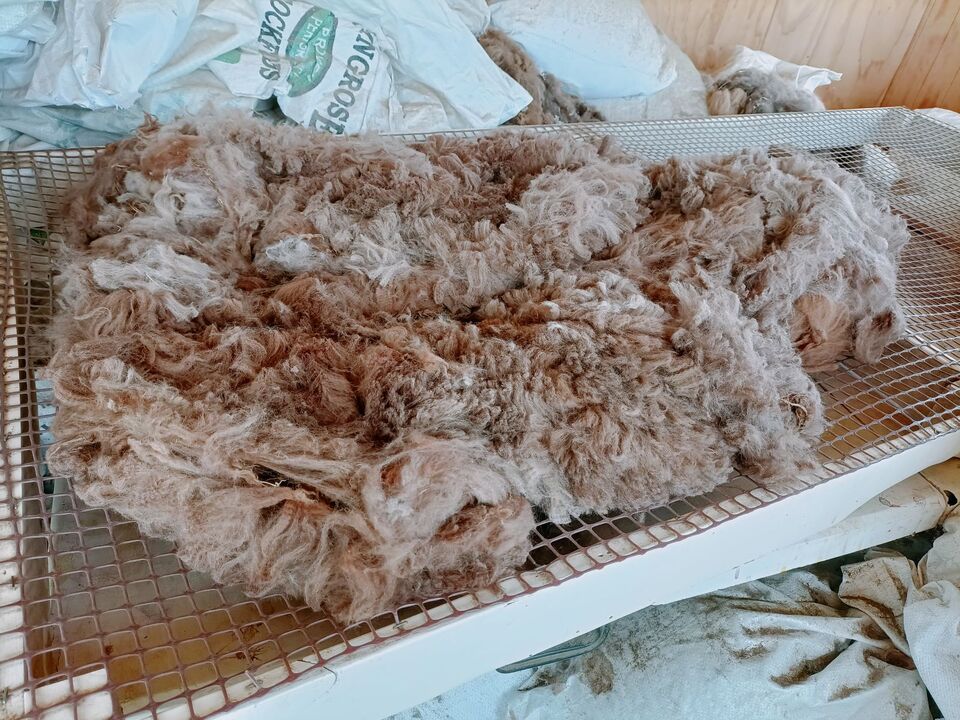 1st Fleece from Valetta, a lovely medium rose grey girl. Fleece weight 750g and 16.3 micron. Staple length 65mm. As with all dark cria fleeces the tips are stained from the amniotic fluid when she was still in uterus.