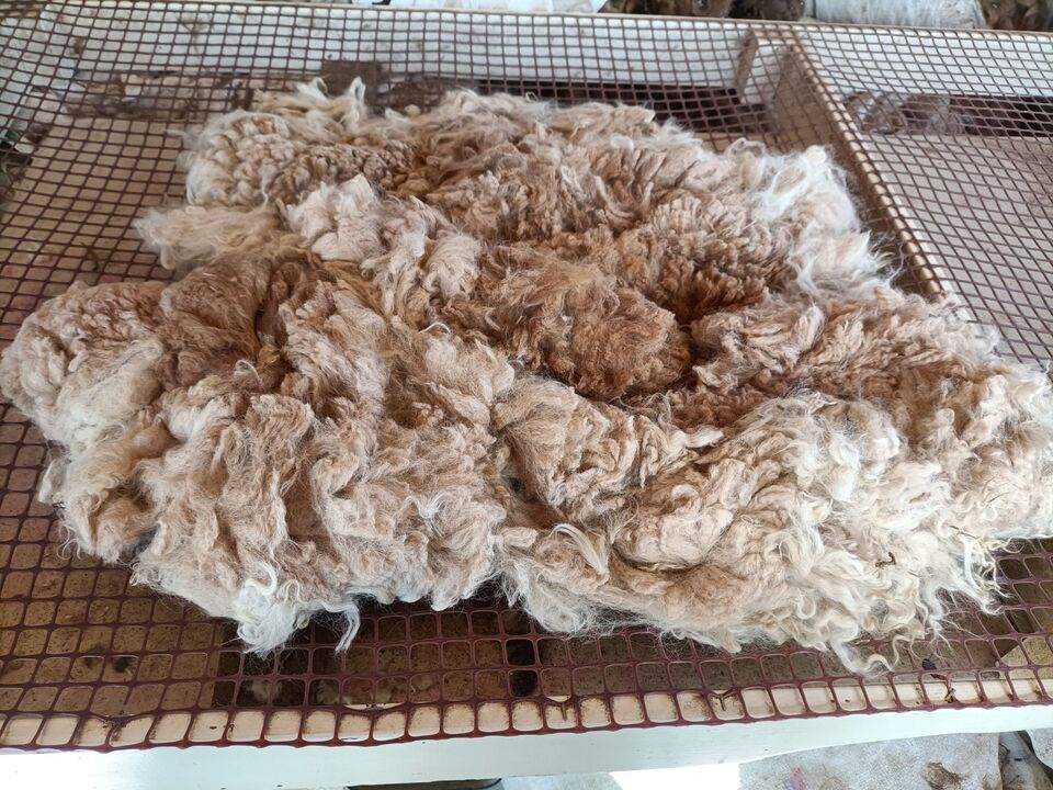 1st Fleece from Vee, a lovely medium fawn girl. Fleece weight 824g and 15.8 micron. Staple length 110mm. As with all cria fleeces this has not been skirted so there will be some VM (vegetable matter) in the fleece.